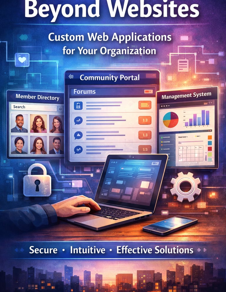 Need more than a website? We develop custom web applications tailored to your specific needs—member directories, community portals, management systems, and more. Secure, intuitive solutions that solve real problems for your organization.